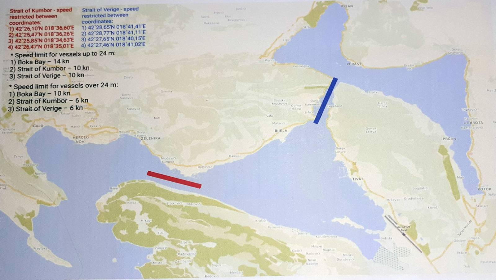 - Plovni put od pilotske stanice do veza luke Kotor je 12.8 nautičkih milja